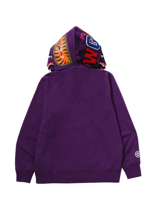 Bape Color Camo Shark Full Zip Double Hoodie Purple