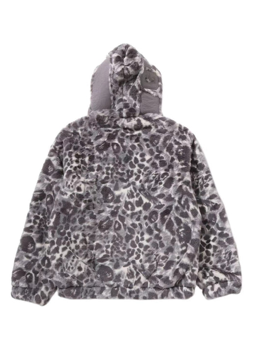 Bape Wild Leopard Pattern Faux Fur Shark Full Zip Jacket Silver