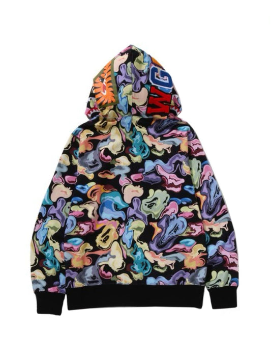 Bape Color Camo Crochet Relaxed Fit Shark Full Zip Hoodie Navy