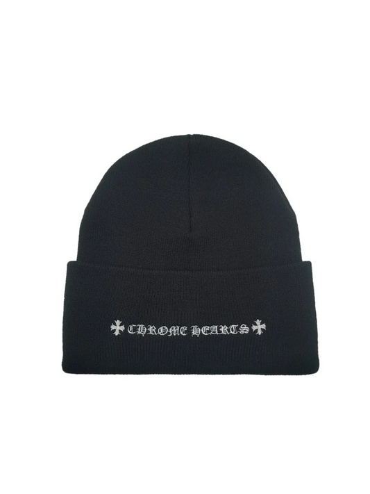 Chrome Hearts White Embroidered CH Logo Beanie Black
