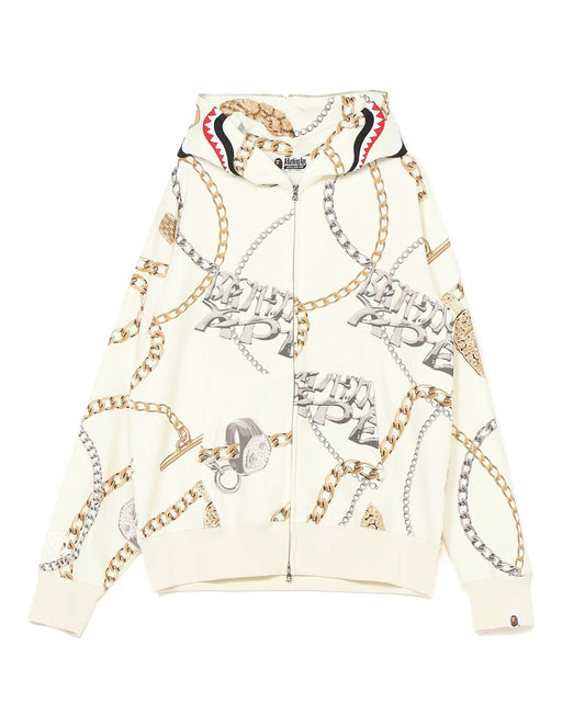 A BATHING APE BAPE Jewels Shark Full Zip Hoodie White