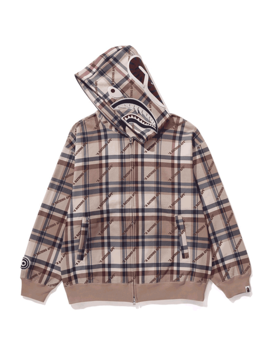 A Bathing Ape Logo Check Pattern Shark Full Zip Hoodie