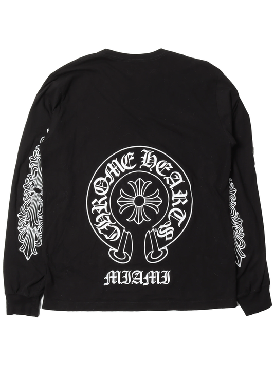 Chrome Hearts Miami Edition Horseshoe Logo with Floral Sleeve LS Tee Black
