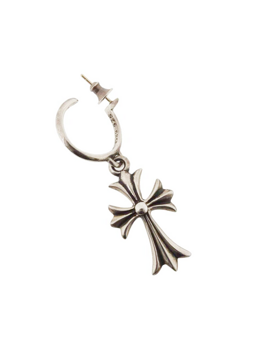 Chrome Hearts Tiny Cross Hoop Silver Earring