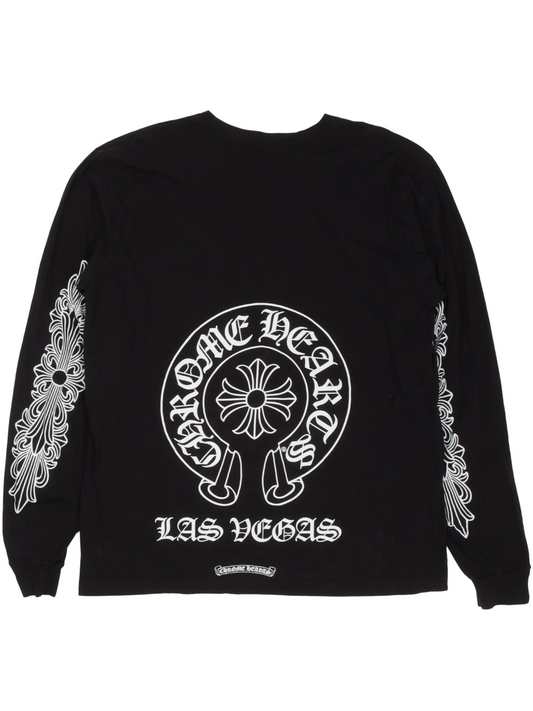 Chrome Hearts Las Vegas Edition Horse Shoe Logo with Floral Sleeve LS Tee Black