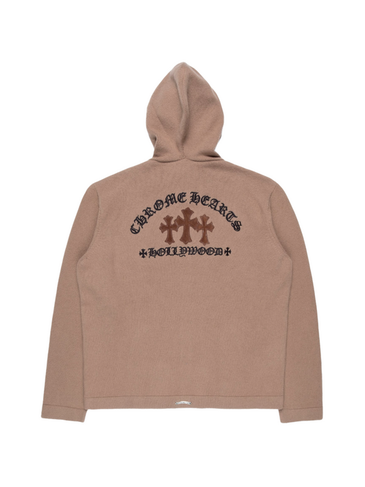Chrome Hearts Triple Cross Leather Patch Logo Embroidered Cashmere Zip Up Hoodie Brown