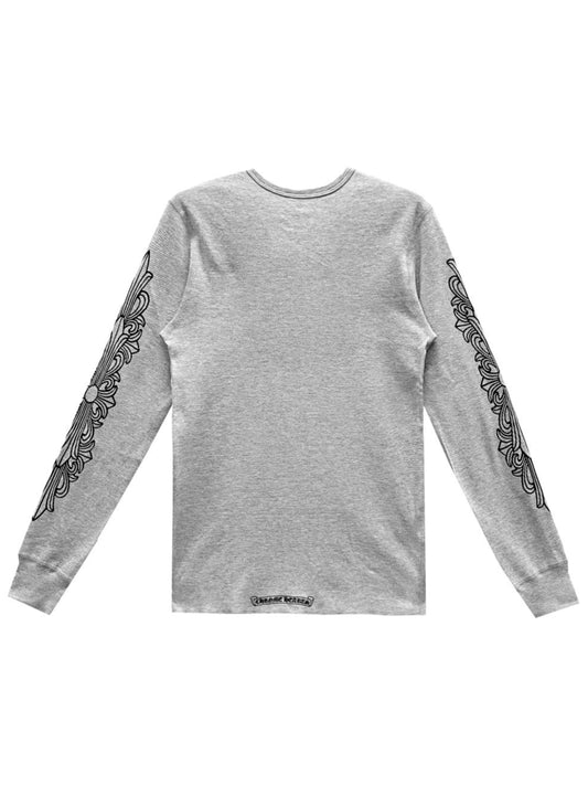 Chrome Hearts Horseshoe Logo Floral Sleeve Waffle Thermal LS Tee Grey