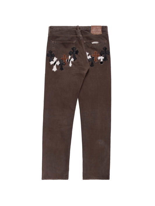 Chrome Hearts Levis Chocolate Brown Denim with Multi Cross Patch Jeans Brown