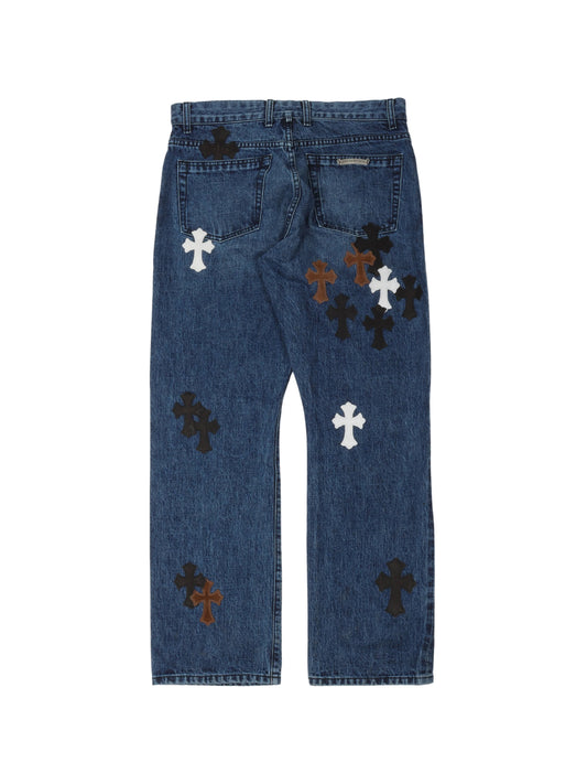 Chrome Hearts Brown & Black & White Multi Cross Patch Carpenter Jeans Blue
