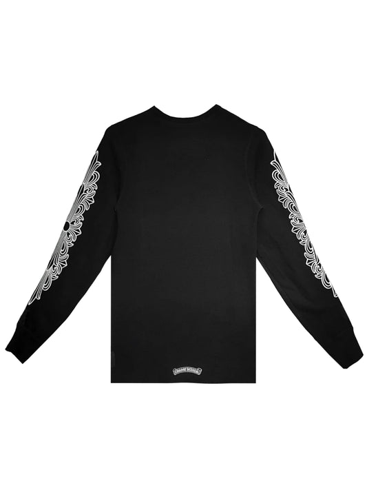 Chrome Hearts Horseshoe Logo Floral Sleeve Waffle Thermal LS Tee Black