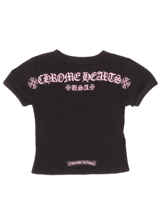 Chrome Hearts Matty Boy Script Logo Pink Shoulder Logo Thermal Baby Tee Black