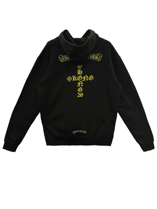 Chrome Hearts Hong Kong Exclusive Gold Print Scroll Logo Hoodie Black