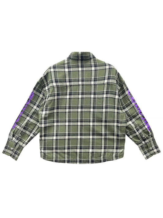 Chrome Hearts Work Dog Green Plaid Purple Floral Sleeve Flannel Jacket Green
