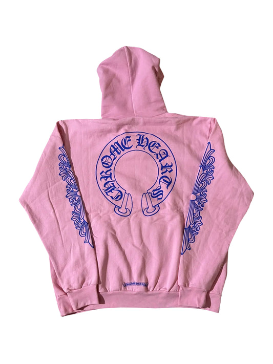 Chrome Hearts Blue Floral Sleeve Horseshoe Logo Back Hoodie Pink