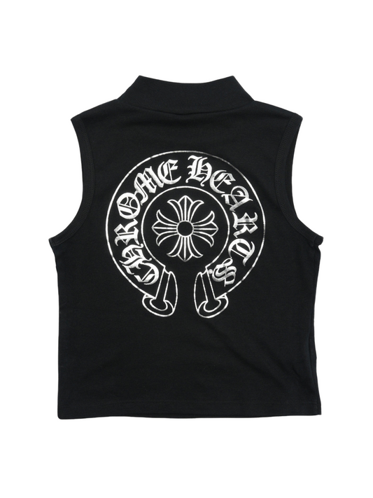 Chrome Hearts Silver Printing Deadly Doll Front Horseshoe Logo Back Mock Neck Tank Top Black