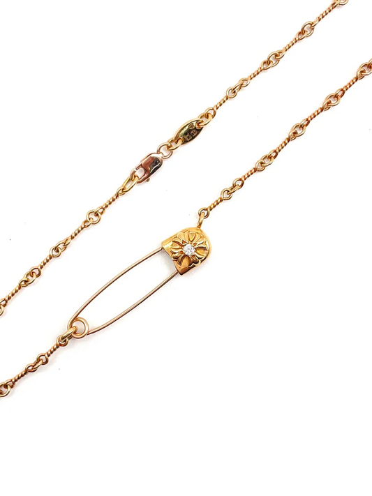 Chrome Hearts 22k Gold Twist Chain Safety Pin Clip Necklace with Diamond
