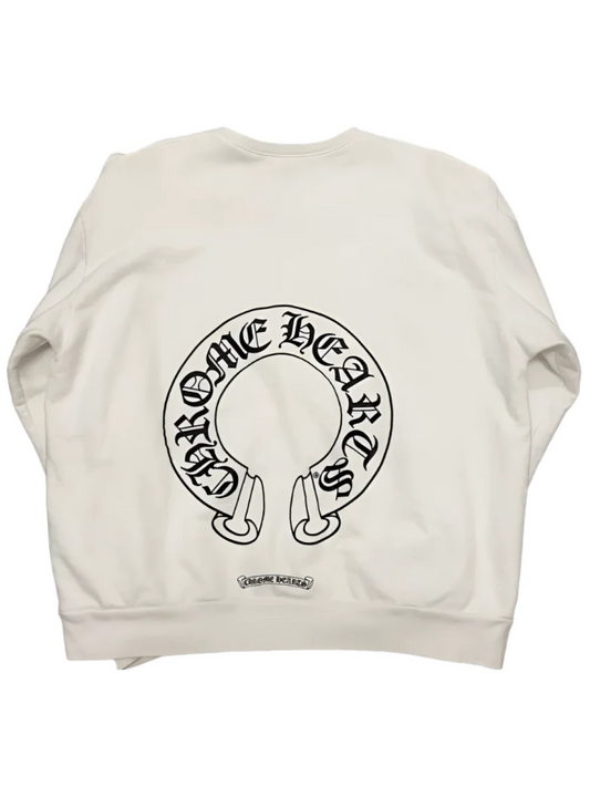 Chrome Hearts Horseshoe Back with Floral Sleeve Crewneck White