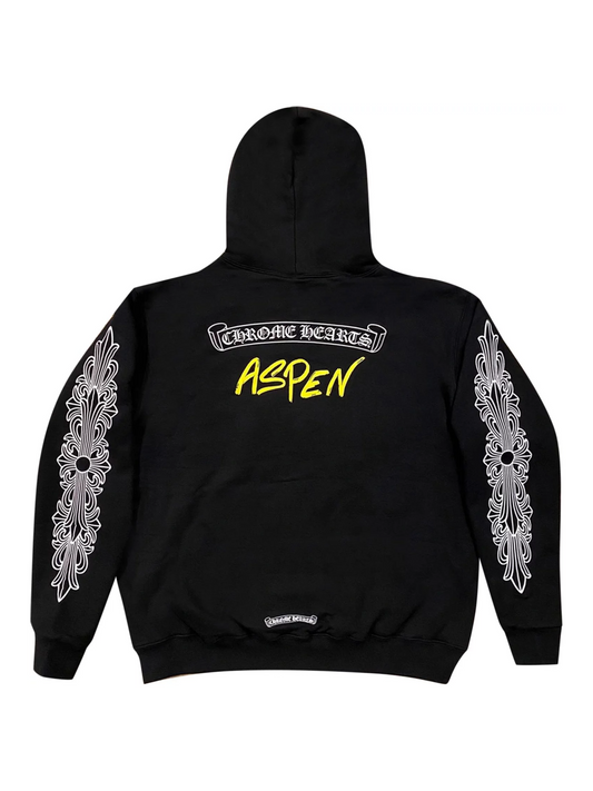 Chrome Hearts Scroll Logo Back with Floral Sleeve Aspen Exclusive Zip Up Hoodie Black
