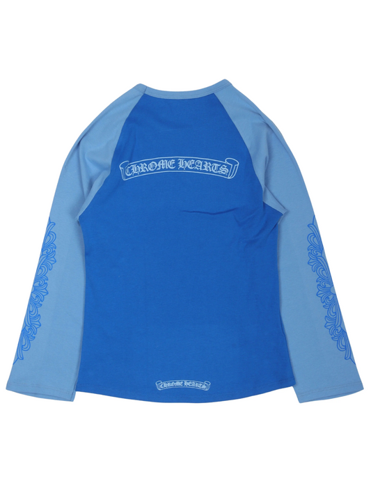 Chrome Hearts 3/4 Scroll Logo T-Shirt Baseball Tee Two Tone Blue