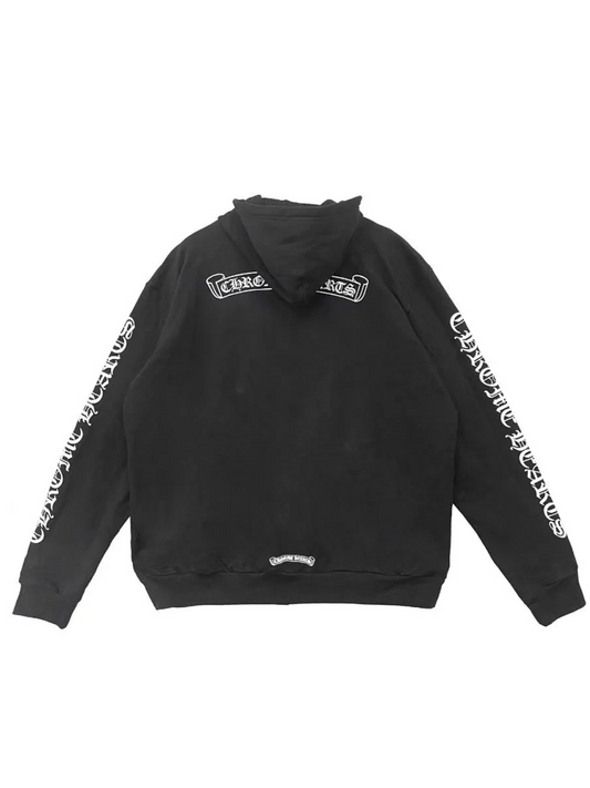 Chrome Hearts Scroll Logo Back Zip Up Hoodie Black
