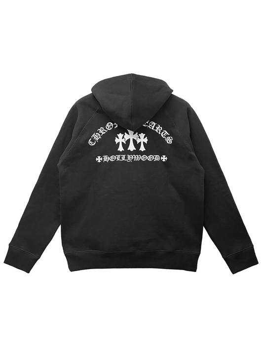 Chrome Hearts Triple Cross Embroidery Hollywood Back Zip Hoodie Black