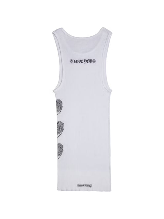 Chrome Hearts Black Heart Printed Love You Rib Tank Top White