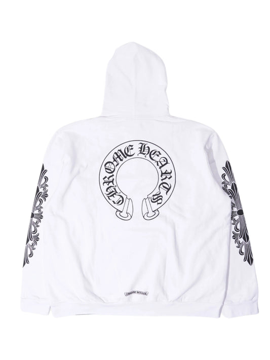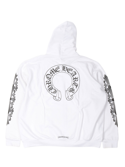 Chrome Hearts Horseshoe Logo Floral Sleeve Zip Hoodie White