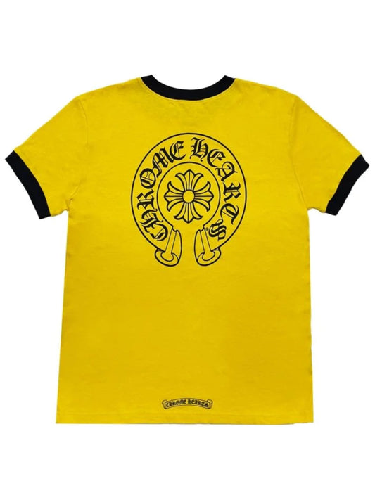 Chrome Hearts Roller Skate Black Scroll Logo Front Horseshoe Logo Back Tee Yellow