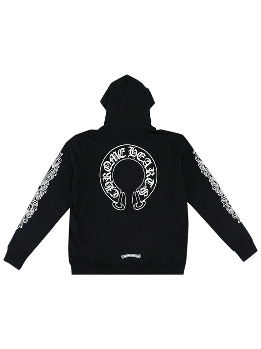 Chrome Hearts Horseshoe Logo Floral Sleeve Hoodie Black