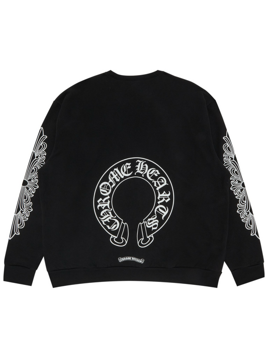 Chrome Hearts Horseshoe Logo Back with Floral Sleeve Crewneck Black