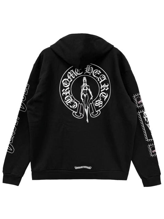 Chrome Hearts Deadly Doll Pink Dagger Logo Zip Hoodie Black