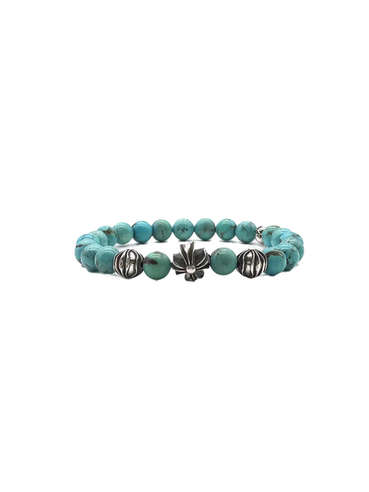 Chrome Hearts 8mm Green Beaded Bracelet with Four Silver Balls