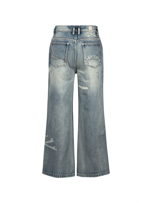 C2H4 × mastermind JAPAN Totem Laser Jeans Fade Blue