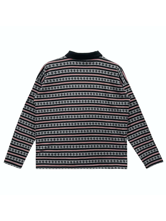 Chrome Hearts Matty Boy Chomper Stripe Long Sleeve Polo Shirt Black