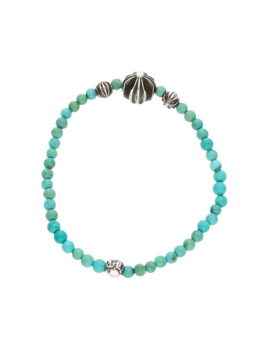 Chrome Hearts Mini Beaded Turquoise with Plus Charm Multi Silver Balls Bracelet