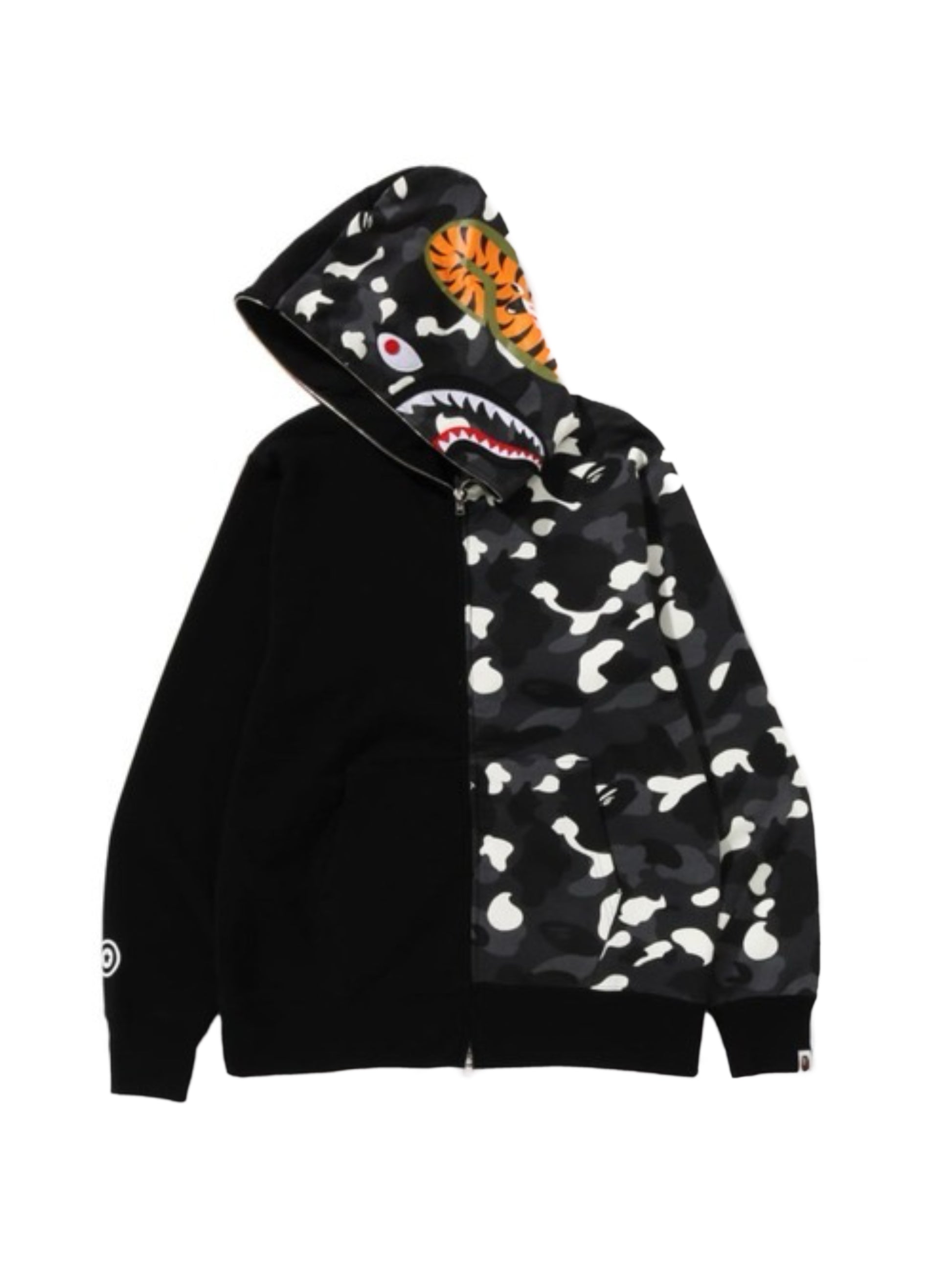 Bape City Camo Tiger Shark Full Zip Hoodie Glow in Dark Black