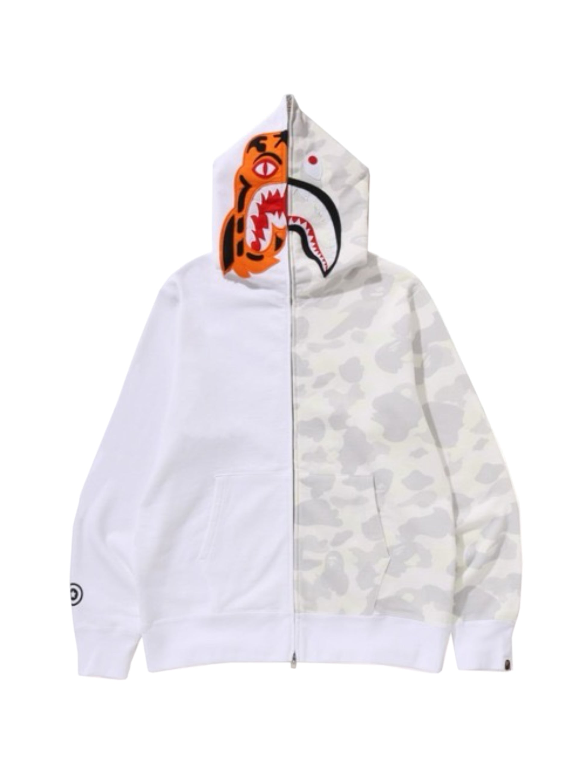 Bape City Camo Tiger Shark Full Zip Hoodie Glow in Dark White