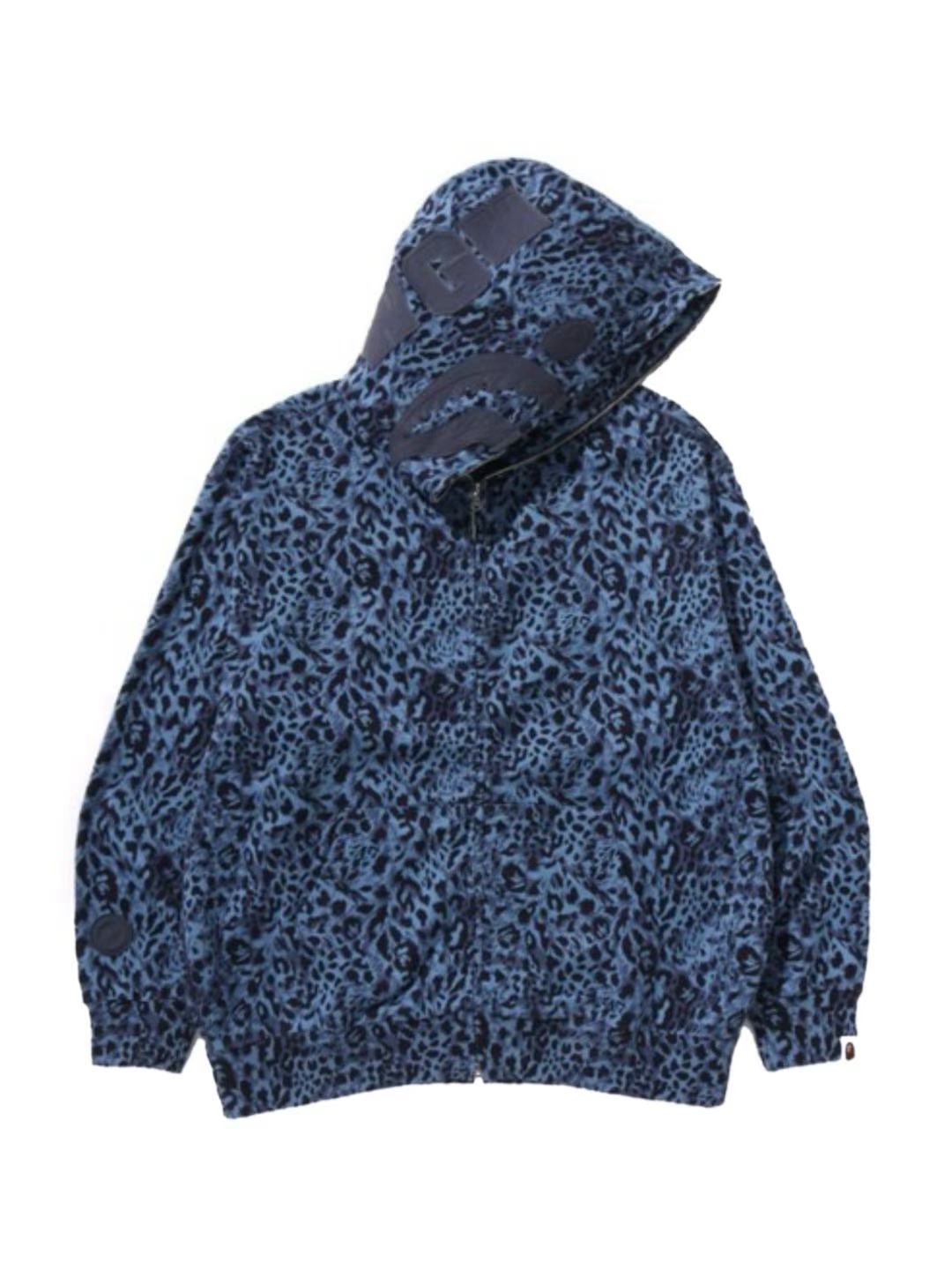 Bape Wild Leopard Pattern Shark Relaxed Fit Full Zip Hoodie Blue