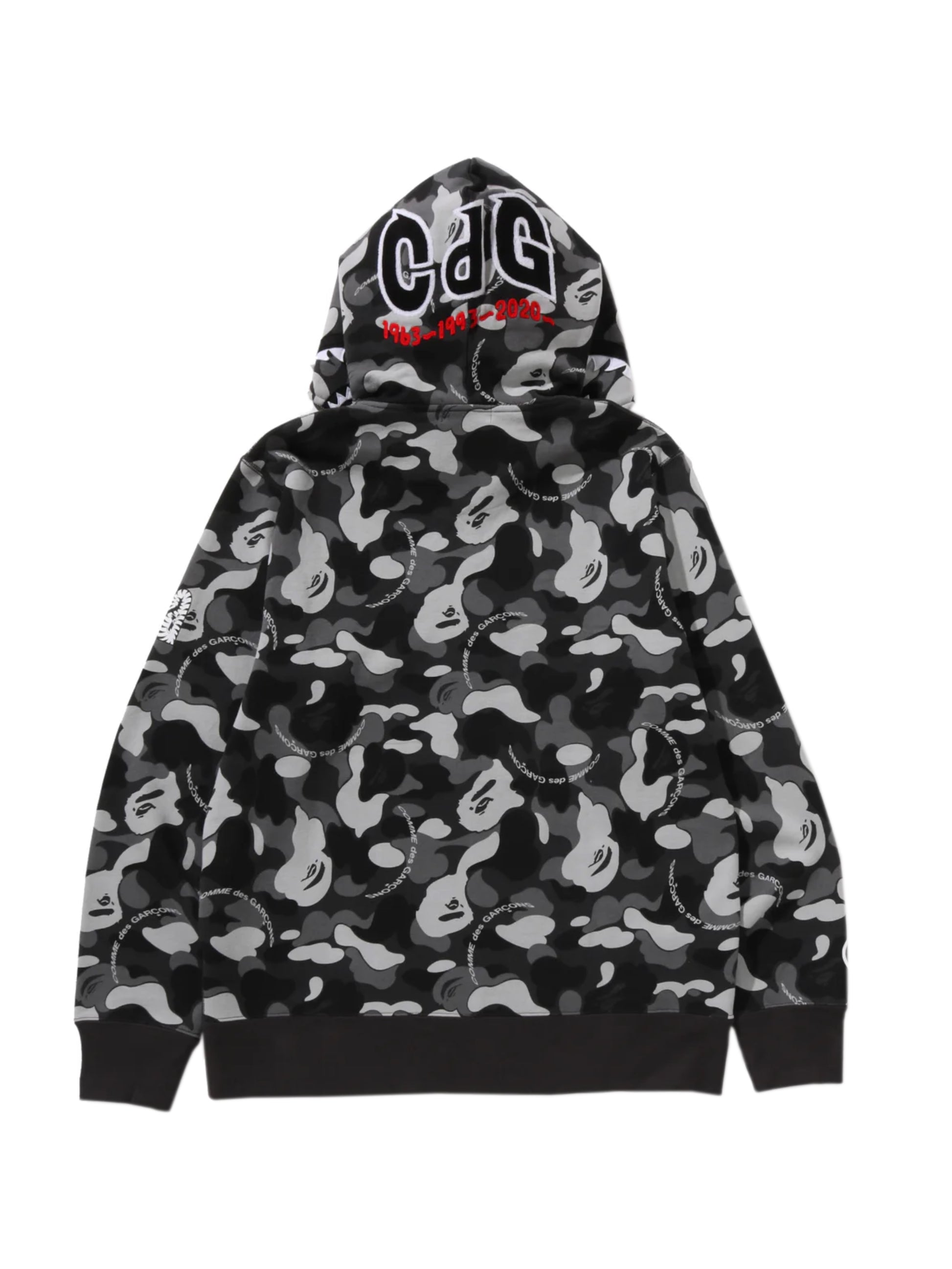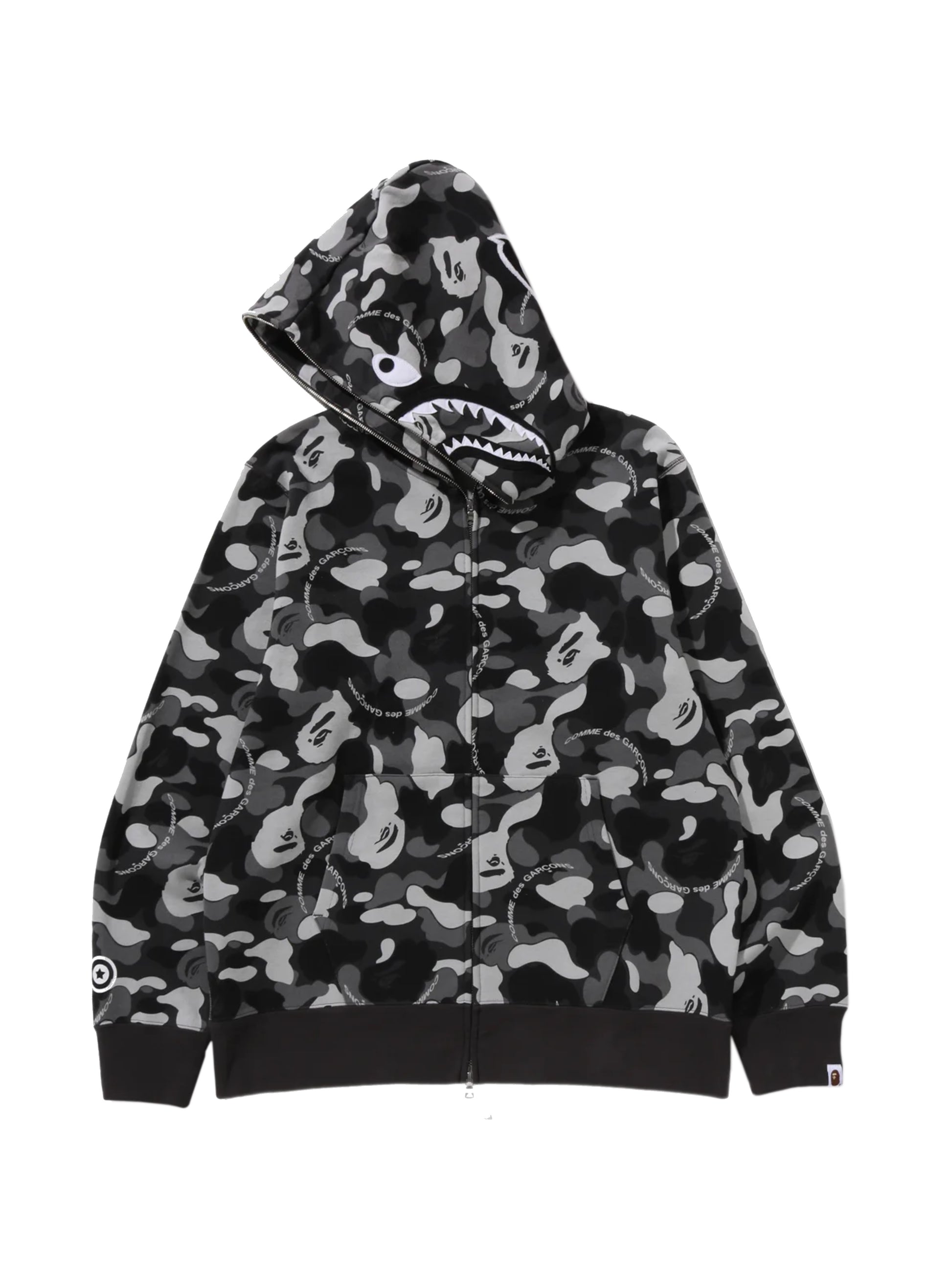 Bape x CDG Shark Full Zip Hoodie Black Camo Osaka Exclusive