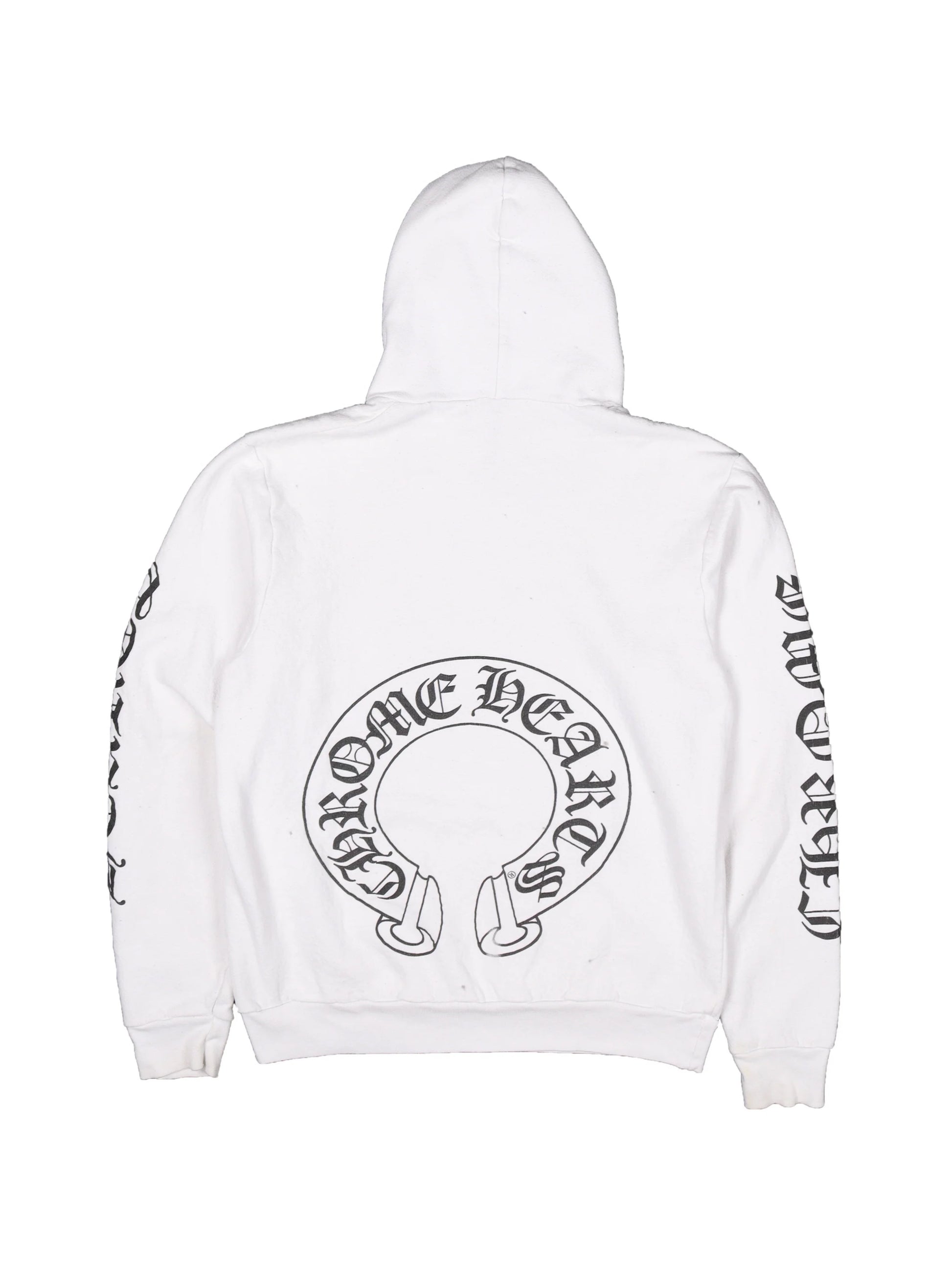 Chrome Hearts Matty Boy Red Chomper on Hood Logo Script Sleeve Horseshoe Logo Back Hoodie White Size M C118468330-Used