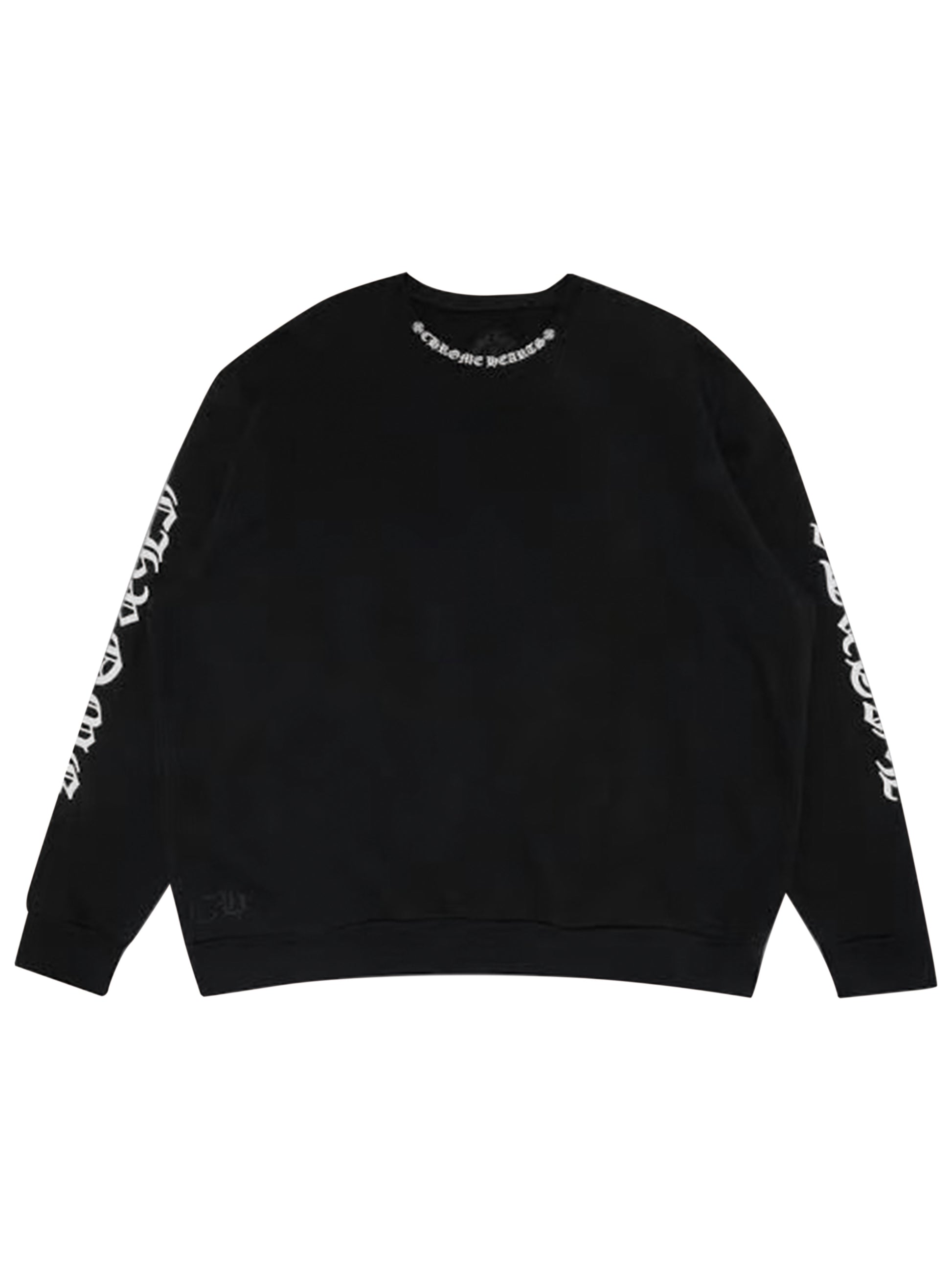 Chrome Hearts White Neck Script Logo Crewneck Black