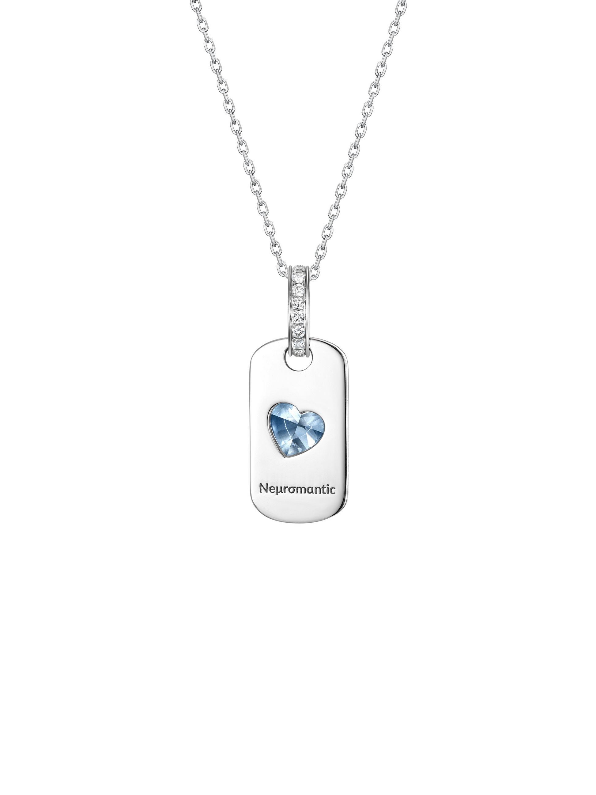 Neuromantic Heart Blue Diamond Full Diamond Tag Pandent 18K White Gold